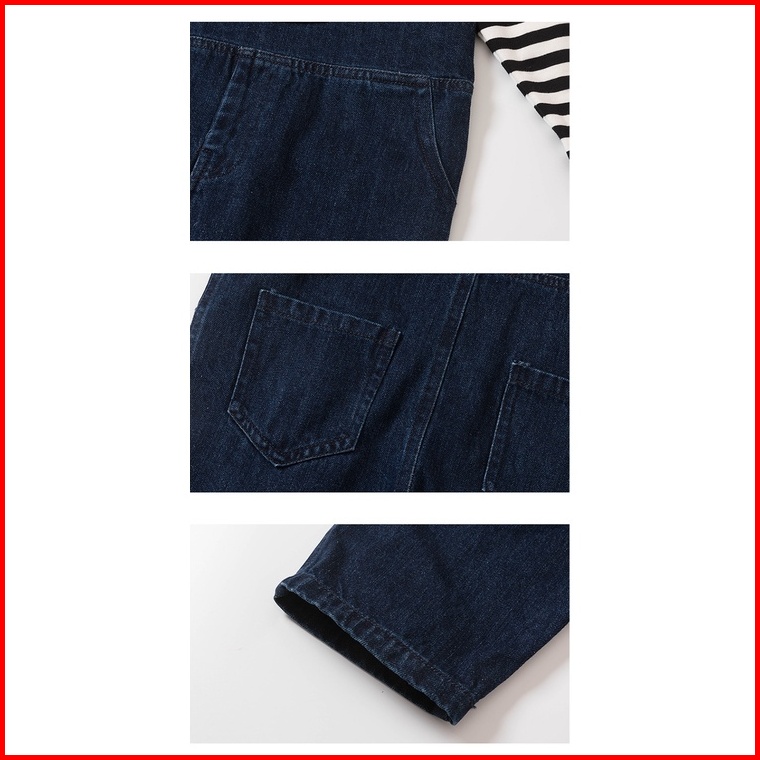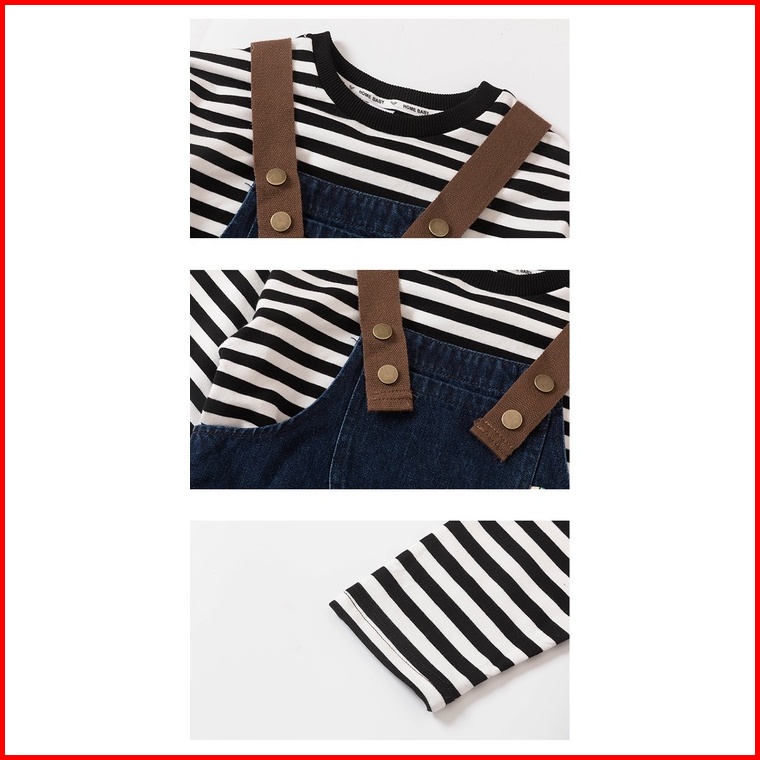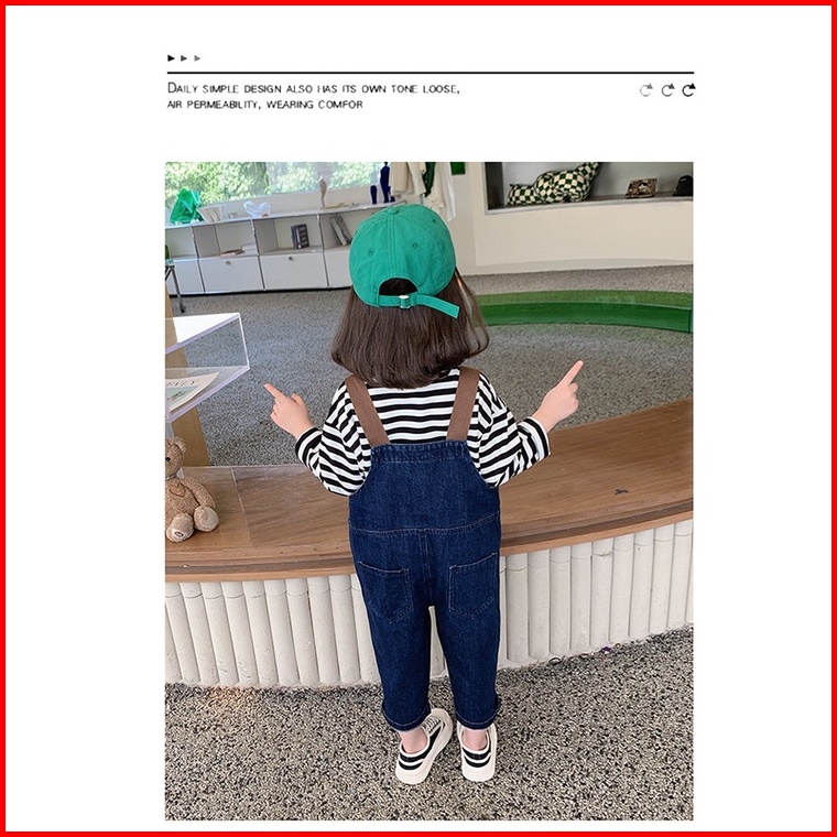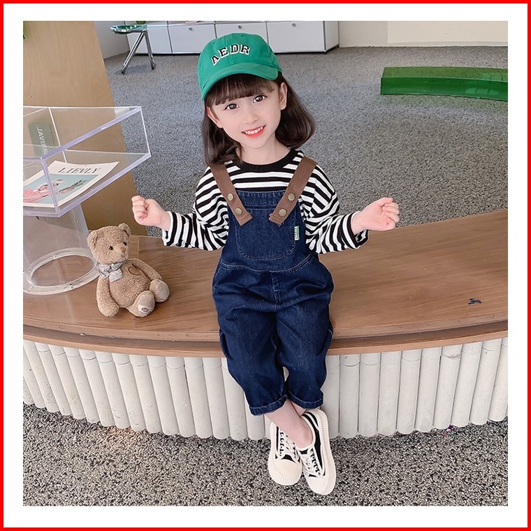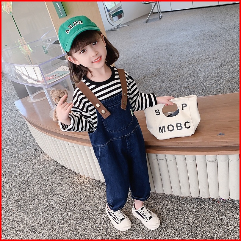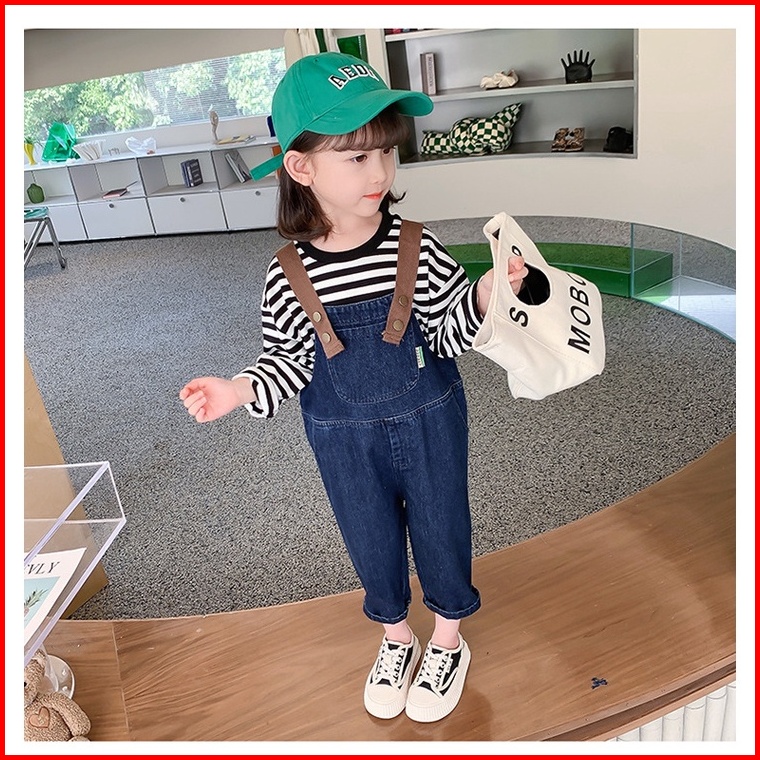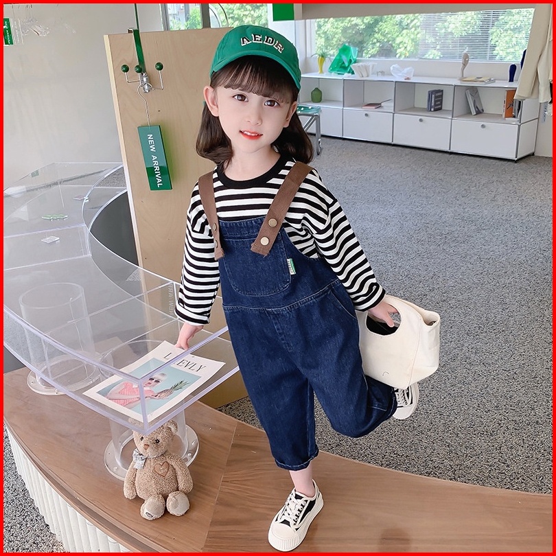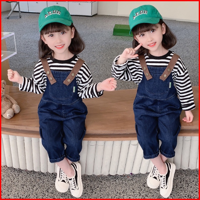 Cbj Setelan Overall Anak Perempuan Cewek Denim 2in1 Set Baju Garis Celana Overall Jeans Anak Cewe Perempuan