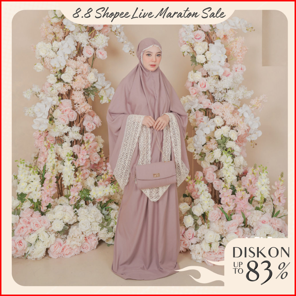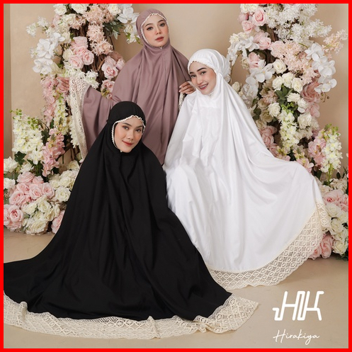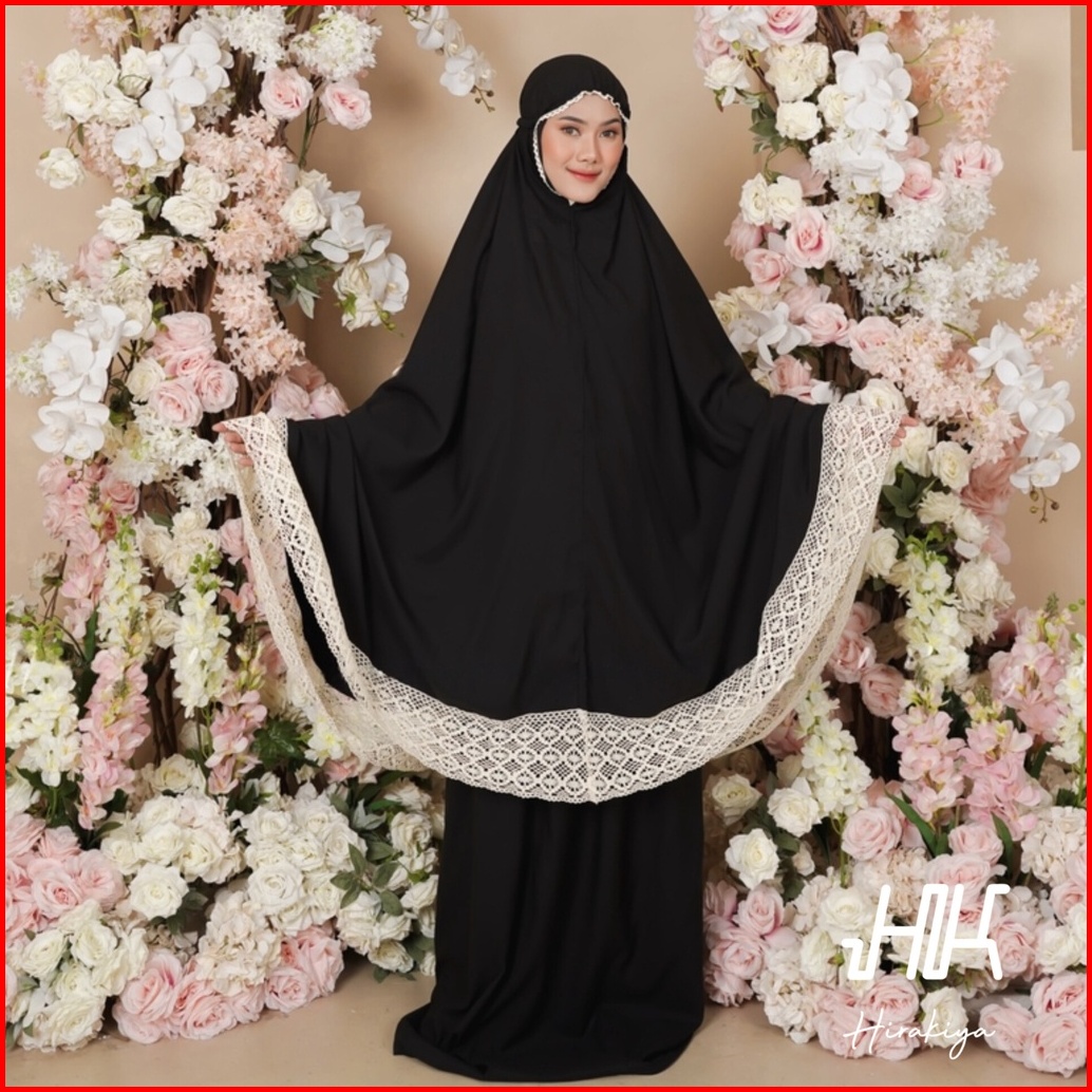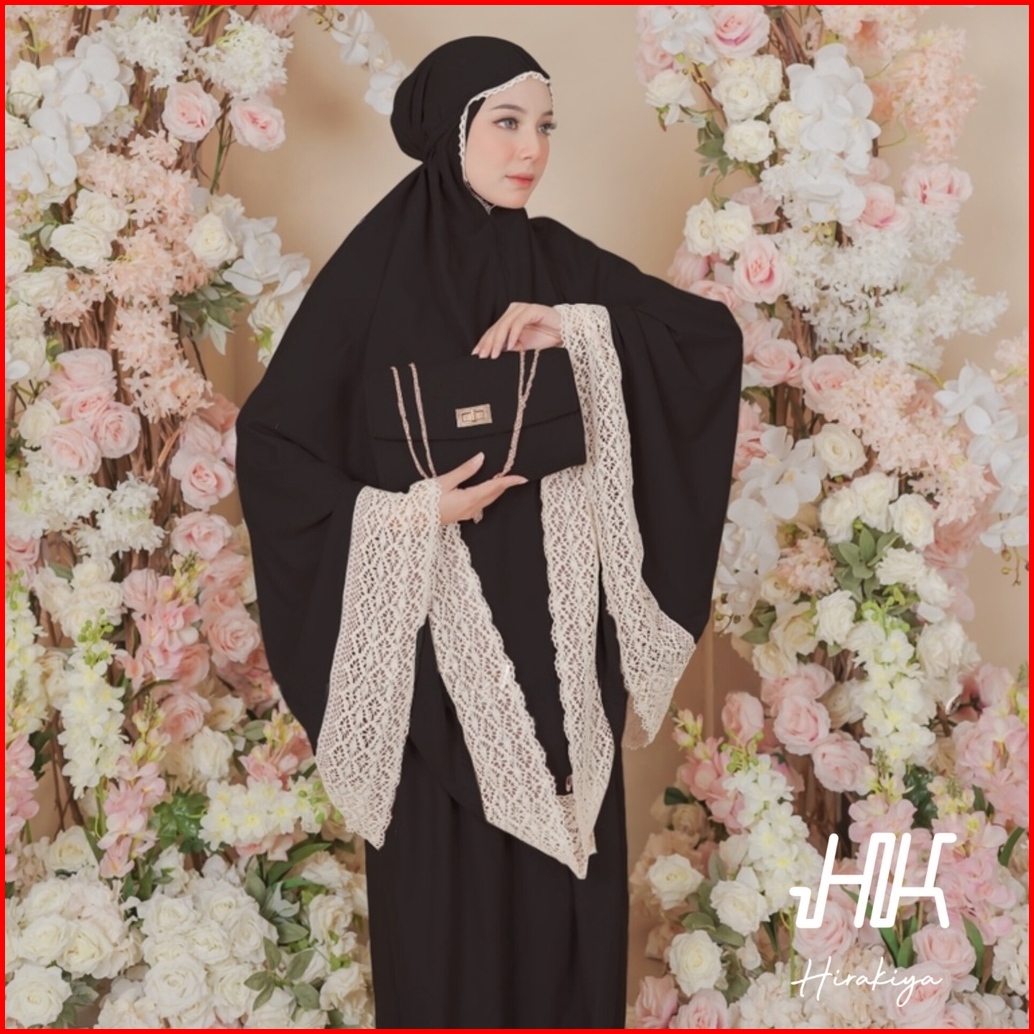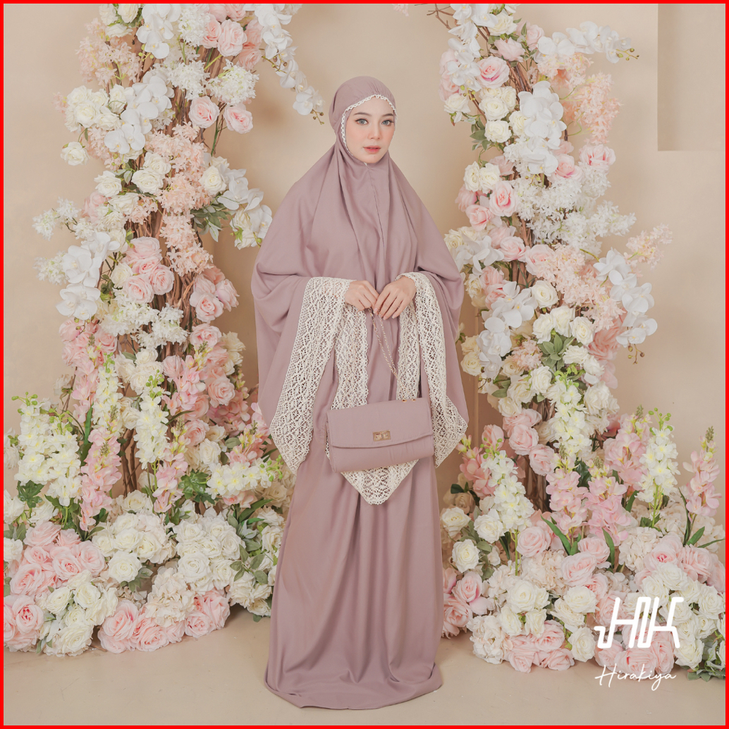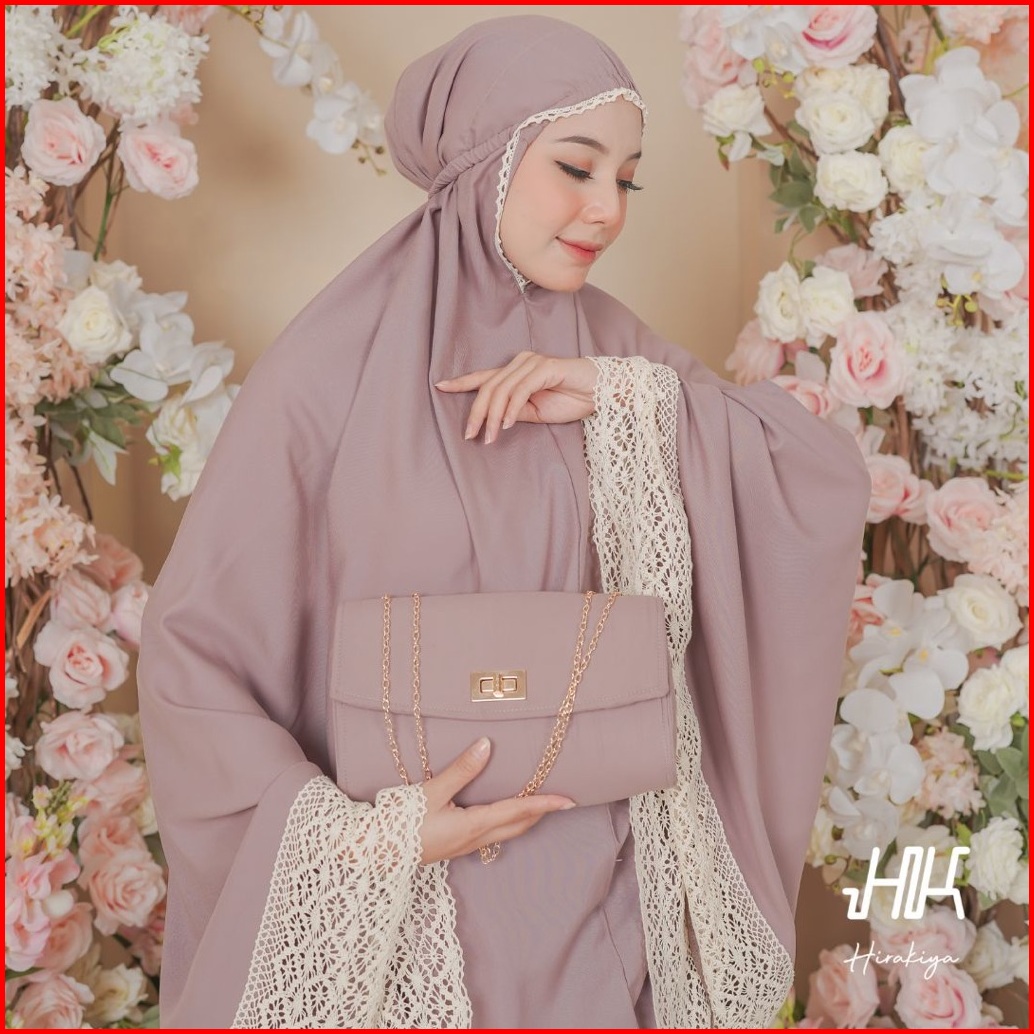 Hirakiya - Kiya With Bag Mukena Dewasa Katun Polos Renda Rajut Jumbo Lace Adara Hampers Seserahan
