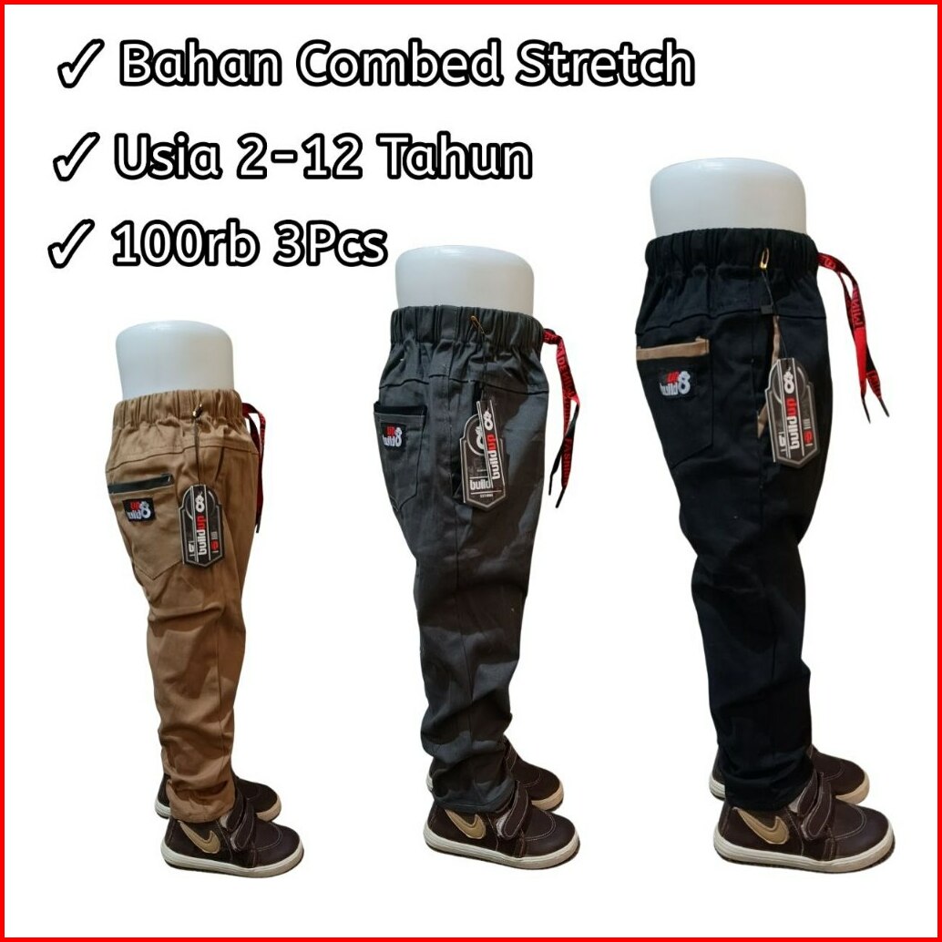 Paket 100ribu Dapat 3pcs Celana Anak Chino Usia 2-12 Th Bahan Combed Twill Streact Melar