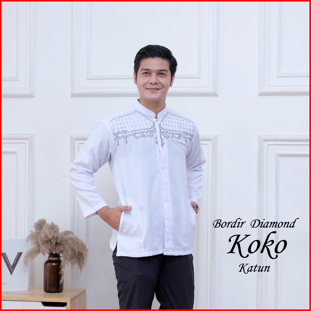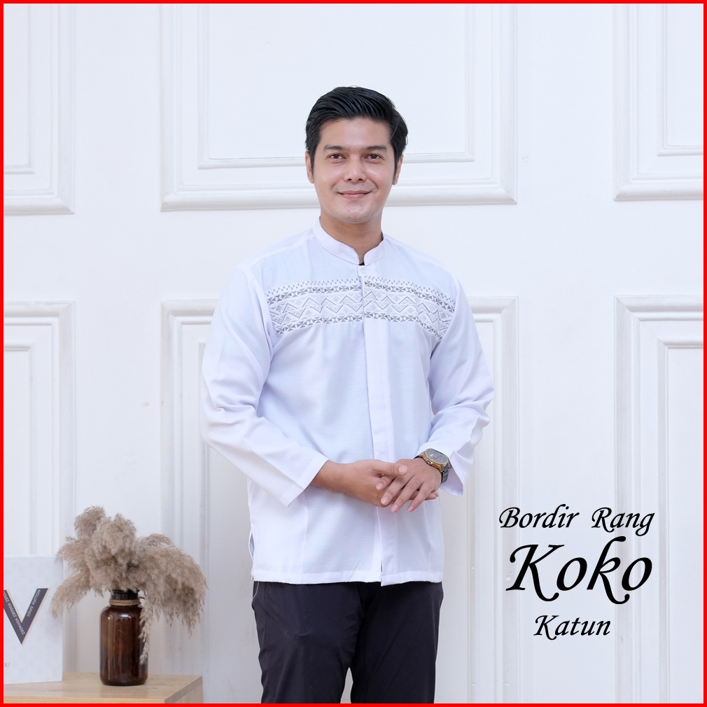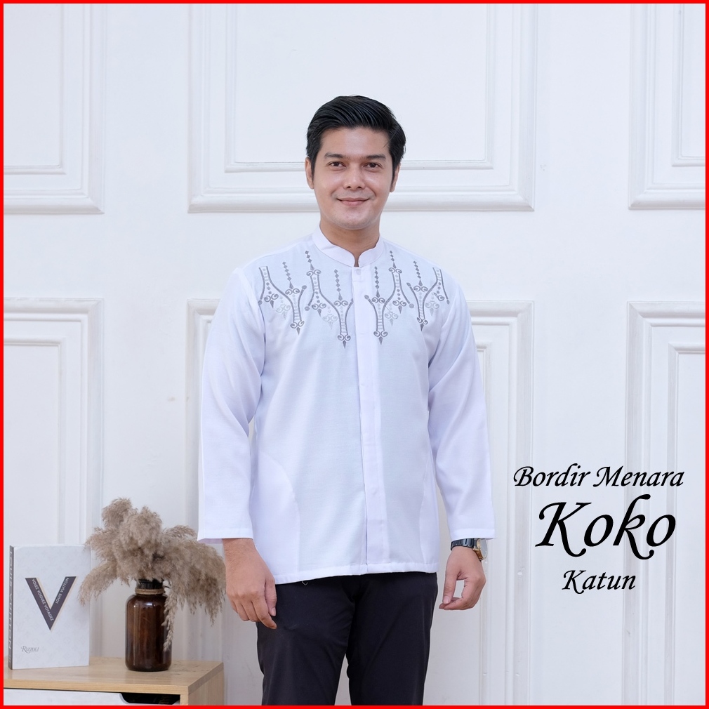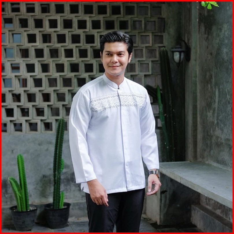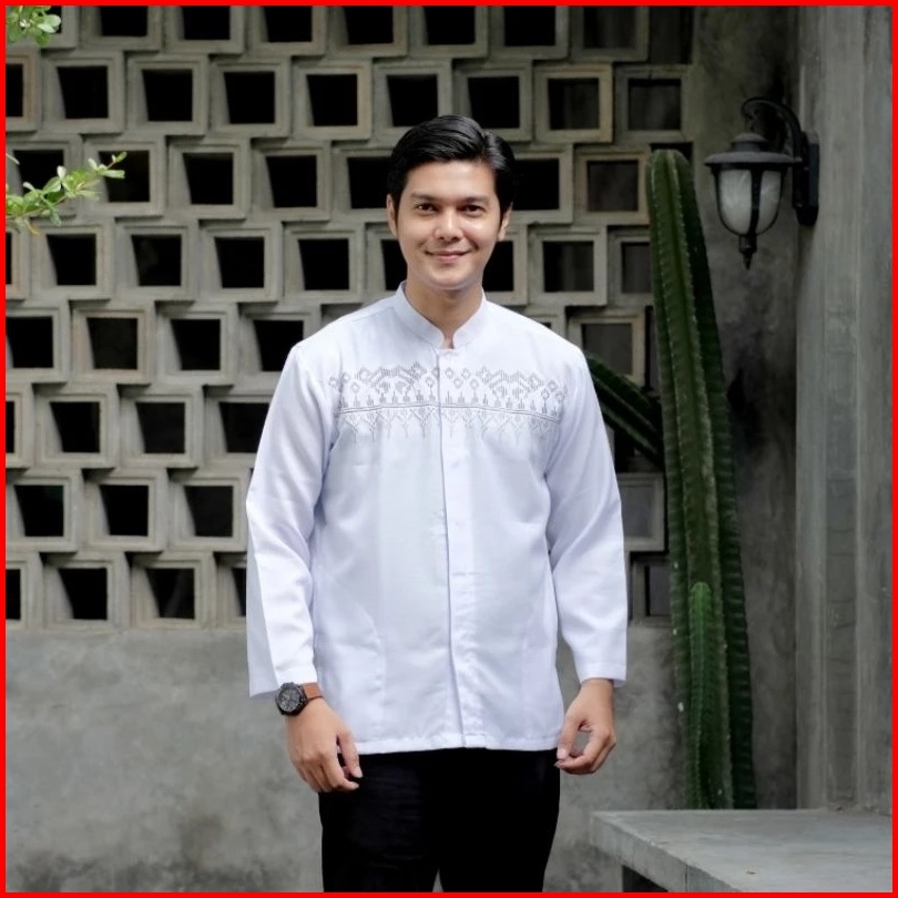 Baju Koko Putih Lengan Panjang Baju Koko Pria Bordir Katun M L Xl Xxl