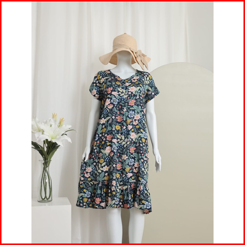 Nana Dress Daster Rayon Premium Selutut Busui Hamil Ritsleting Depan Adem Halus Terbaru Jumbo Murah Kekinian