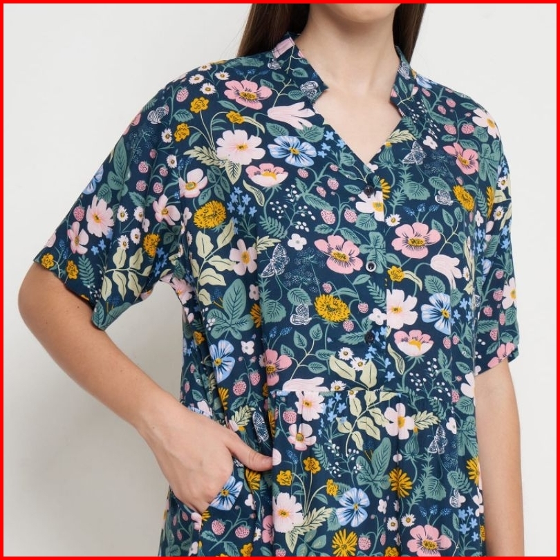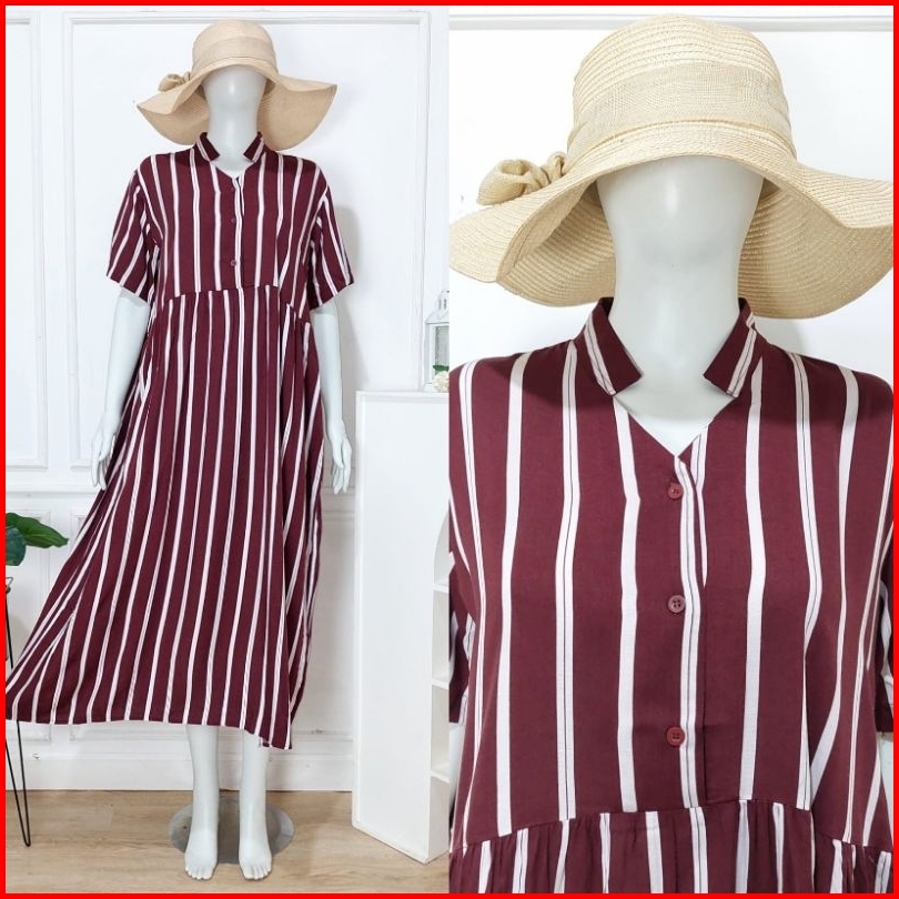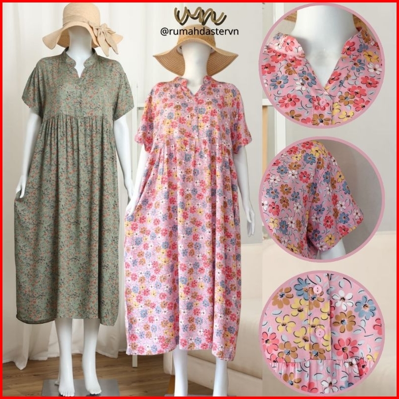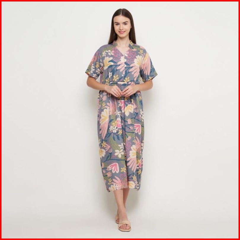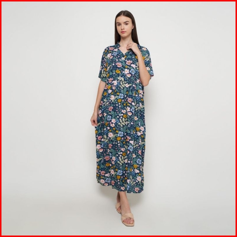 Long Noura Dress Daster Panjang Semata Kaki Kerah Sanghai Busui Friendly