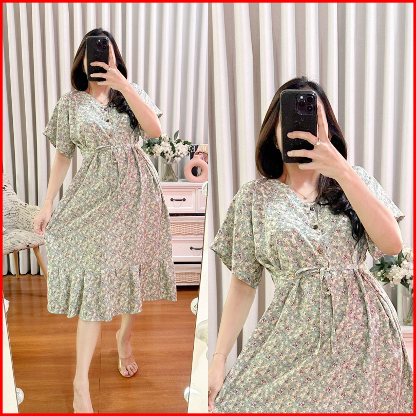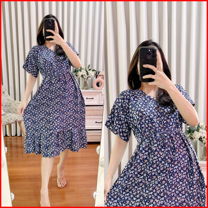 Dress Kancing 3 Busui Daster Cantik Homedress Kekinian