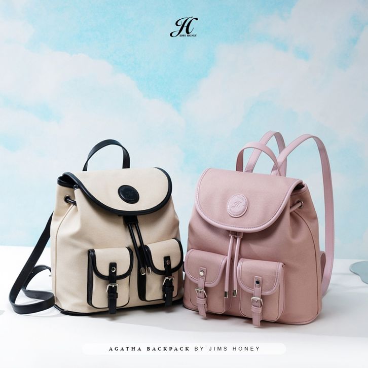 JIMS HONEY - TAS RANSEL WANITA BAHAN CANVAS AGATHA BACKPACK - OFFICIAL STORE ID - TERBARU - KEKINIAN - DEWASA