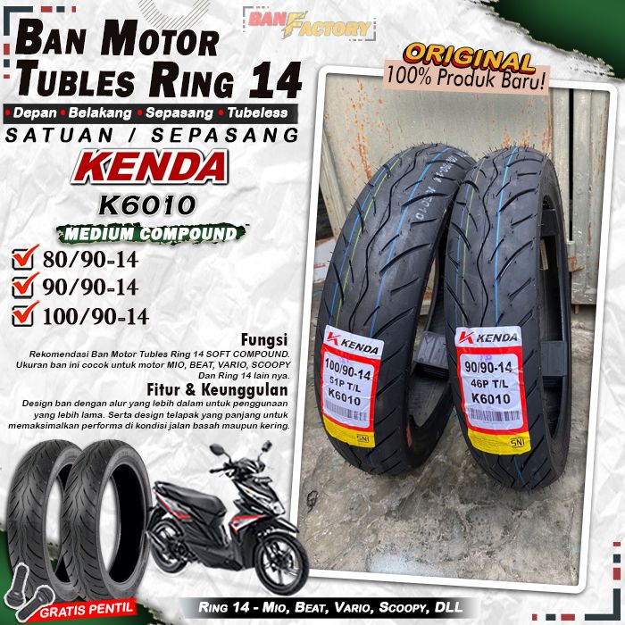 Ban Motor Ring 14 Tubeless Kenda K6010 Ring 14 Tubles Ban Motor Mio Beat Vario Scoopy Ring 14 Tubles