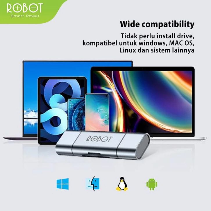 𝐏𝐑𝐎𝐃𝐔𝐊 𝐎𝐑𝐈𝐆𝐈𝐍𝐀𝐋 Card Reader Merk Robot CR202S Upgrade CR202 2 In 1 USB 3.0 Type-C OTG Adapter