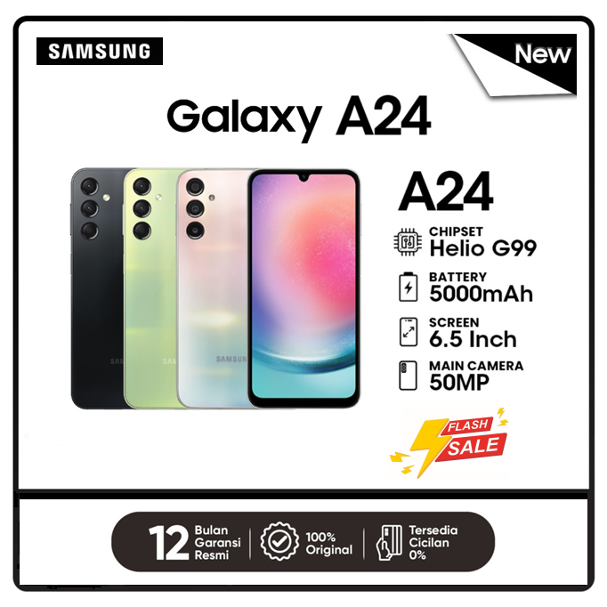 SAMSUNG GALAXY A24 8/128GB GARNSI RESMI NFC Super AMOLED Mediatek MT8781 Helio G99 CAMERA Triple 50 MP
