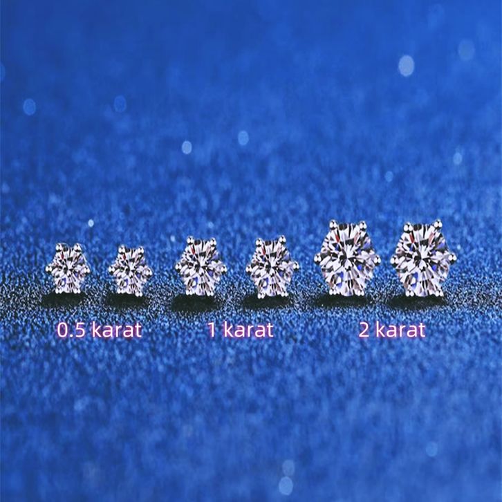 Anting Moissanite GRA ORI Anting berlian asli Perak Klasik dan elegan Wanita anting fashion GRA sertifikat Enam anting c