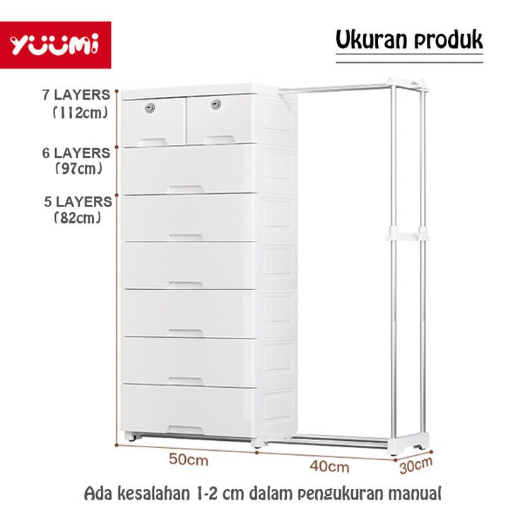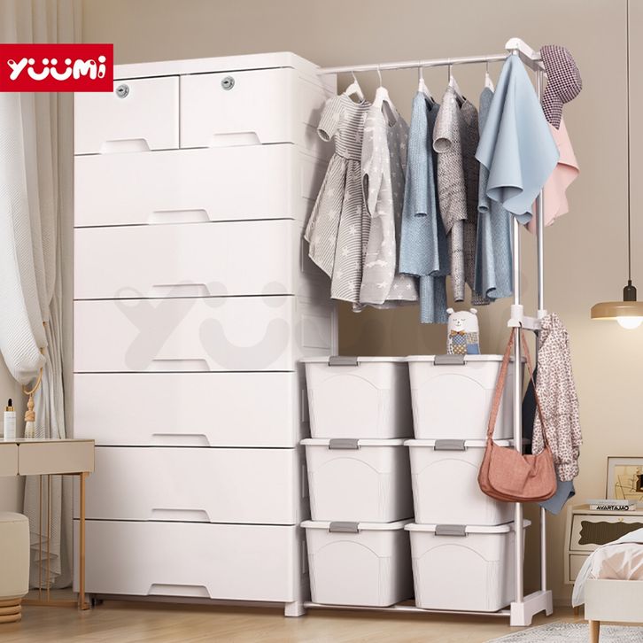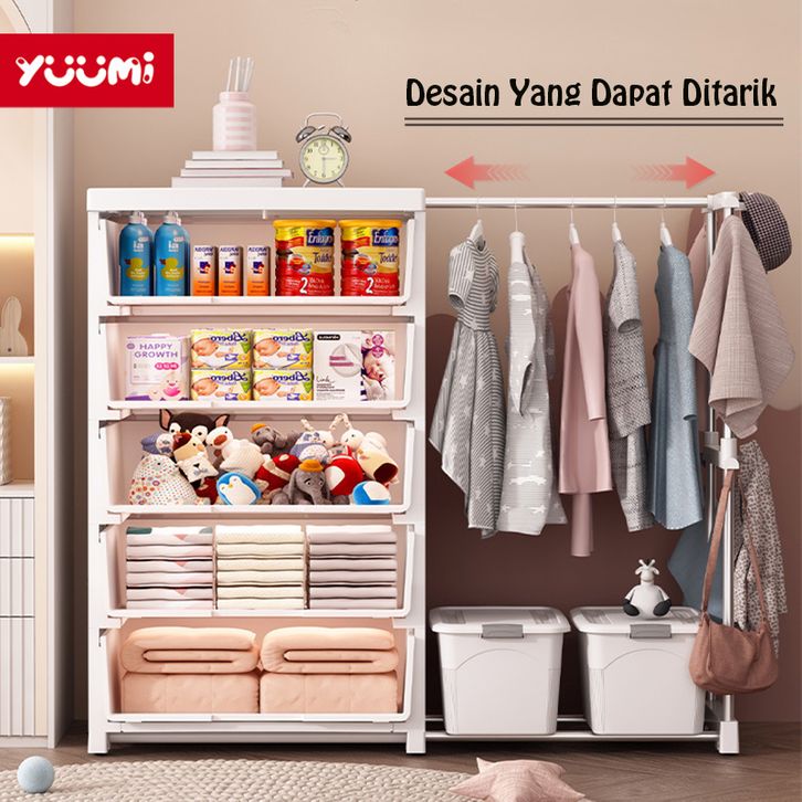 Lemari Plastik Anak Yuumi Gantungan Teleskopik , Lemari Pakaian Susun, Lemari Laci Bayi Estetik, Lemari Baju Multifungsi