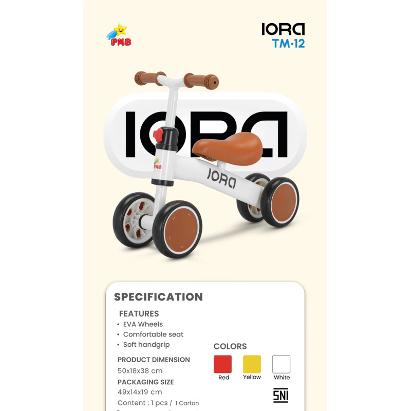 Sepeda Anak Roda Tiga/Balance Bike Pushbike IORA PMB TM12 TM-12 Push Toys Sepedaan Dorong Dorongan Ride On