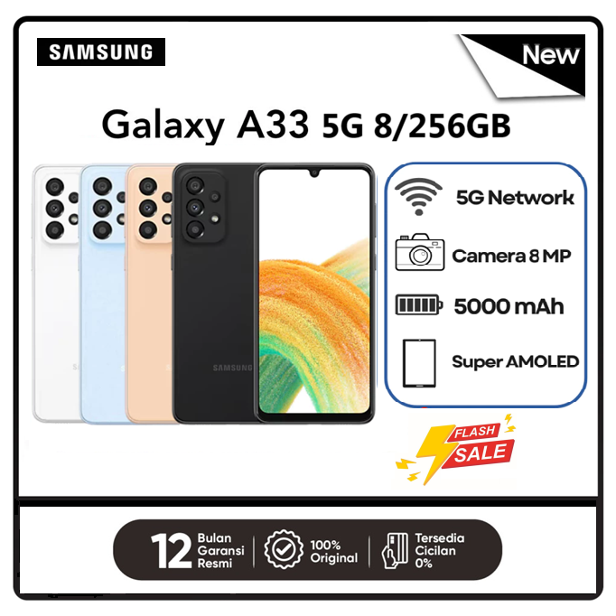 SAMSUNG GALAXY A33 5G 6/128GB GARANSI RESMI Super AMOLED NFC Battery Capacity 5000mAh Exynos 1280
