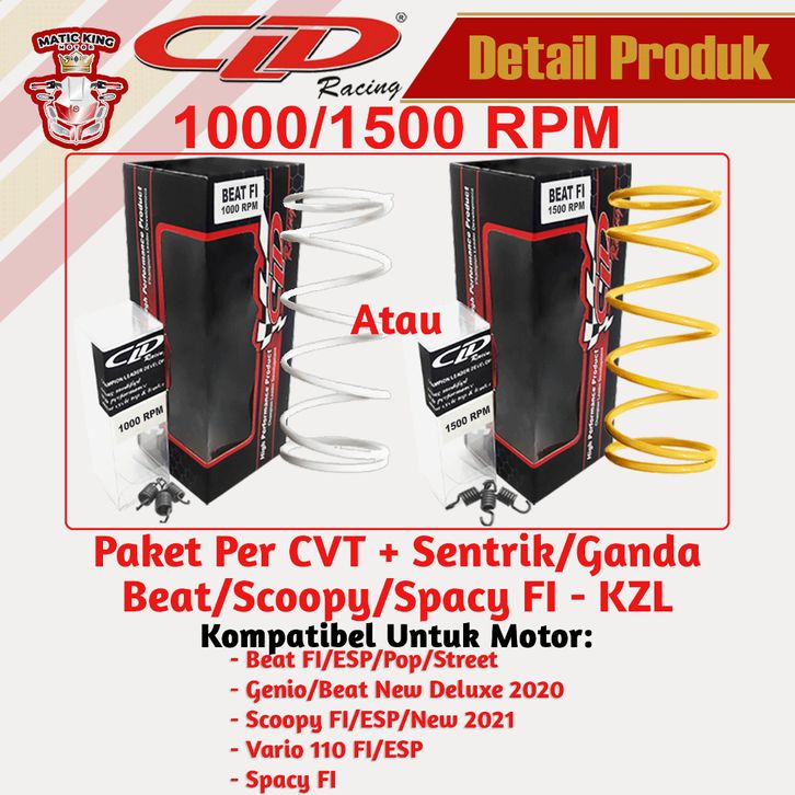 Paket Per CVT Sentrik Ganda Racing Honda Scoopy Beat Genio Deluxe Vario Spacy Karbu Fi ESP 110 CLD 1000/1500 RPM