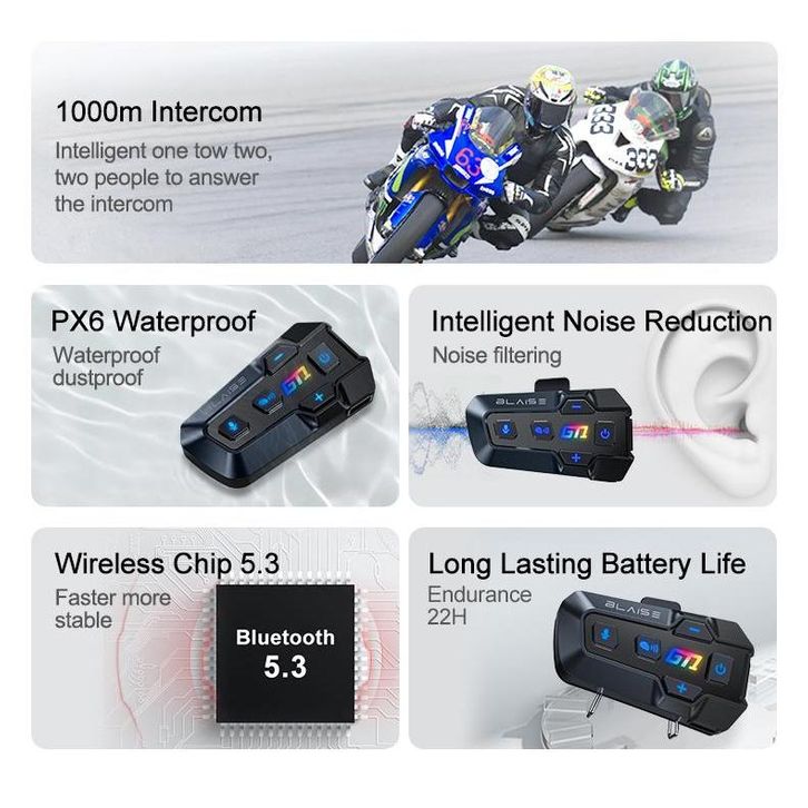 Intercom Helm Original BLAISE GT1 Intercom Helm Waterproof Musik Sharing Interkom Mic Helm Intercom 2 orang Bluetooth H
