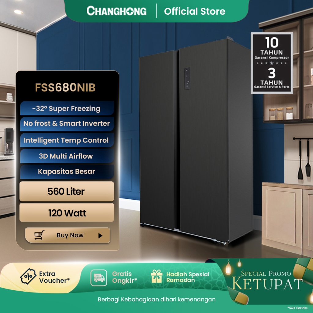 Kulkas 2 Pintu CHANGHONG Side by Side FSS680NIB [560 L] ( Kulkas Inverter) (Kulkas Anti Bunga Es) ( Kulkas Big Capacity)