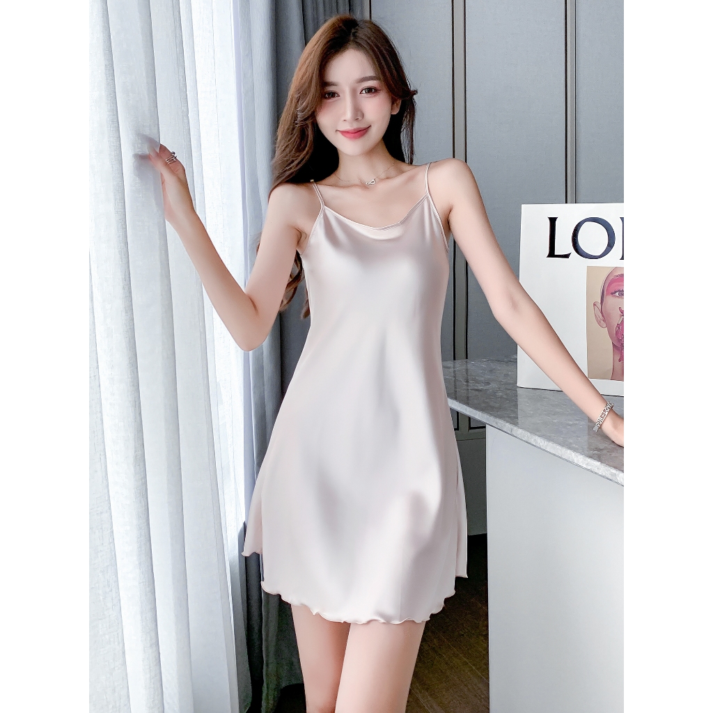 Gadis Kitty Baju Tidur Wanita Lingerie Sexy Gaun Tidur Tanpa Lengan Piyama Tali Bahan Satin