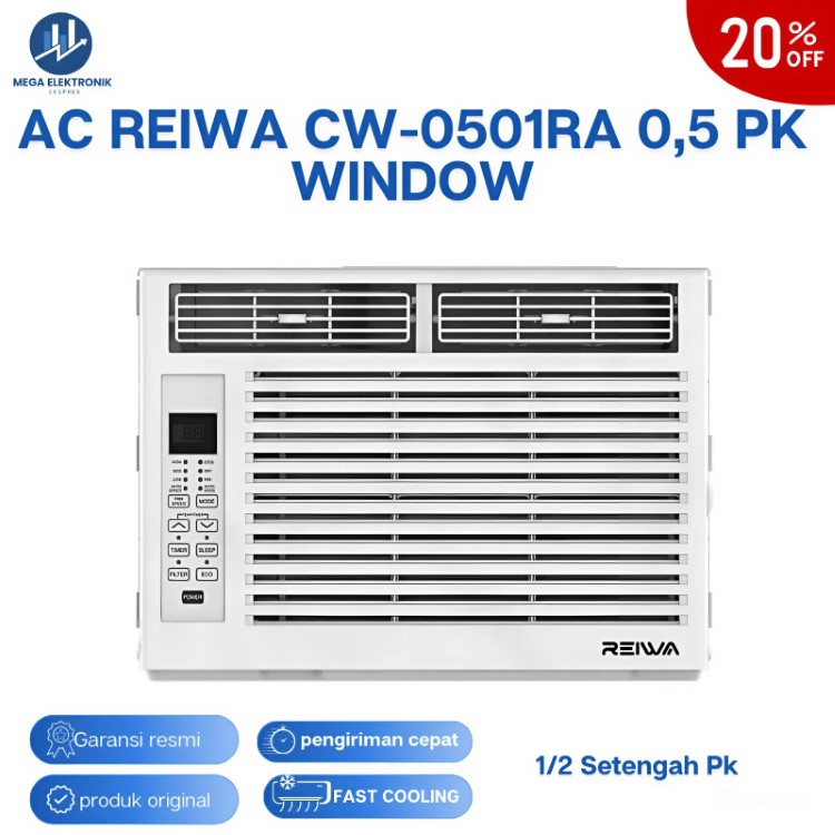 [Mall] Ac Reiwa Cw-0501ra 0,5 Pk Window 1 2 Setengah Pk Low Watt Ac Portable Pendingin Ruangan