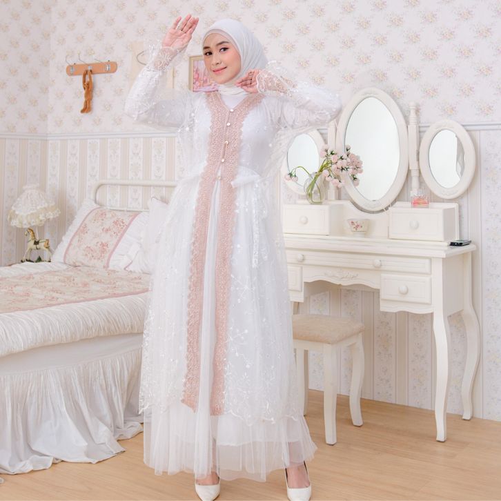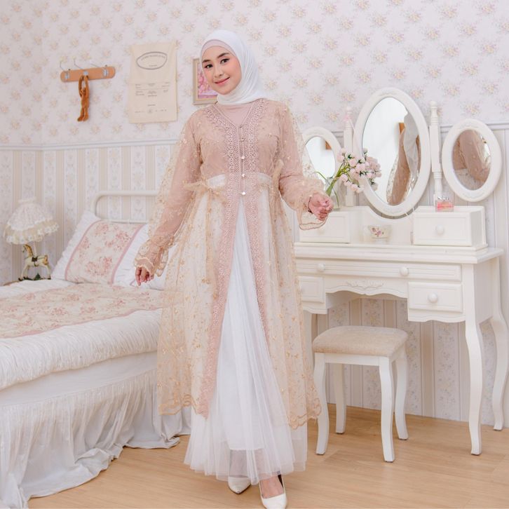 Syafira Outer Brokat Set 2in1 Dan Rok Tutu 2 Layer Outfit Baju Kondangan Wanita Modern Brukat Simple Kekinian
