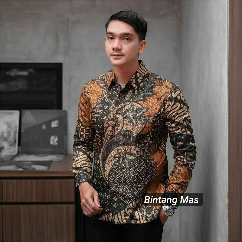 (Gratis Ongkir) Batik Pria Lengan Panjang BATIK AZMIL motif KERATONAN Kode 003 size M L XL XXL Reguler