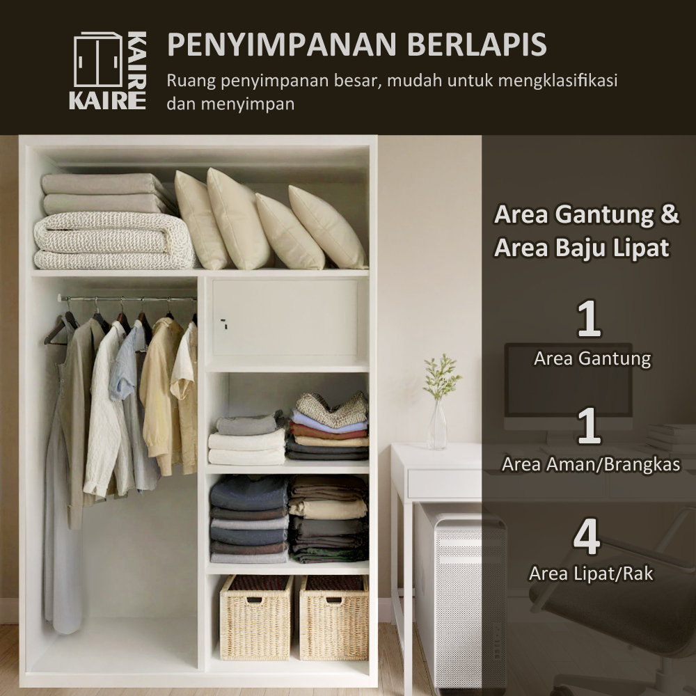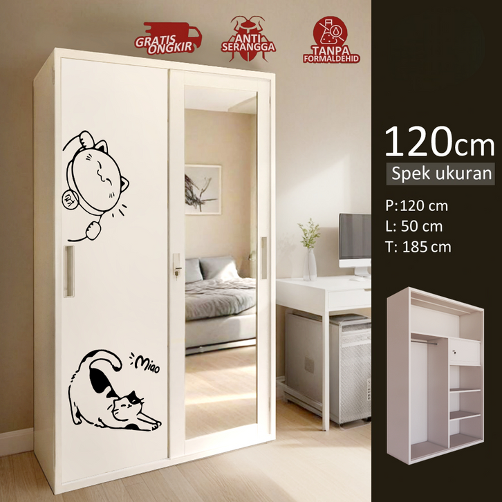 [Star] Lemari sliding Lemari Pakaian Besi 2 Pintu Sliding Jumbo | 120 cm 1 gantungan