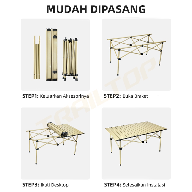 TrailTop Meja Lipat Outdoor Portable Meja Camping Lipat Outdoor Meja Kemping Kursi Lipat Set
