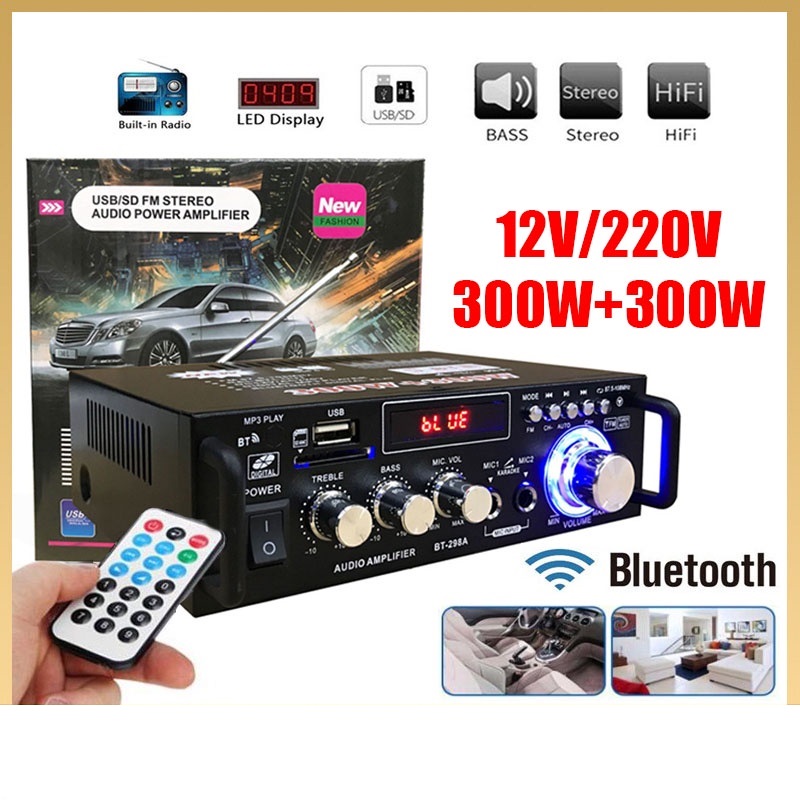 POWER AMPLIFIER SOUND SYSTEM / 600W BT-298A POWER AMPLIFIER BLUETOOTH KARAOKE HOME THEATER FM HI FI POWER 300W+300W BUIL