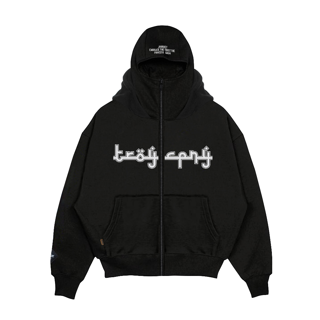 Troy Company HOODIE BOXY ZIPPER BALACLAVA Black Khafi - Jaket Hoodie Zipper Hitam ZB 2894