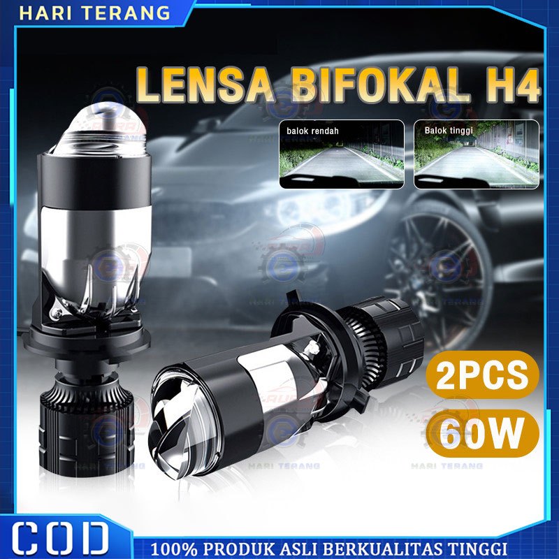 Lampu LED H4 Mobil Lampu 120W Sorot Mobil Super Terang Lampu Motor Super Terang H4 LED Projector Double Lens Headlight 3