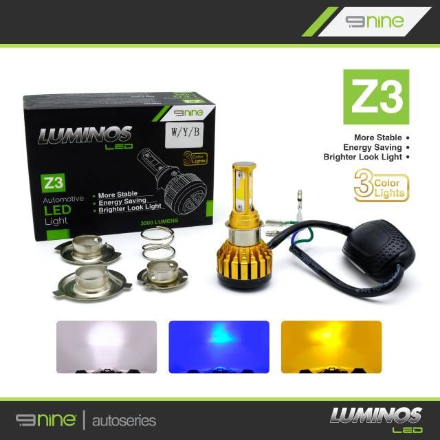 NINE LUMINOSLED LAMPU LED UTAMA MOTOR H6 H4 H7 NINE LUMINOSLED Z3 BISA 3 WARNA PUTIH KUNING BIRU HI LOW SUPER TERANG 36