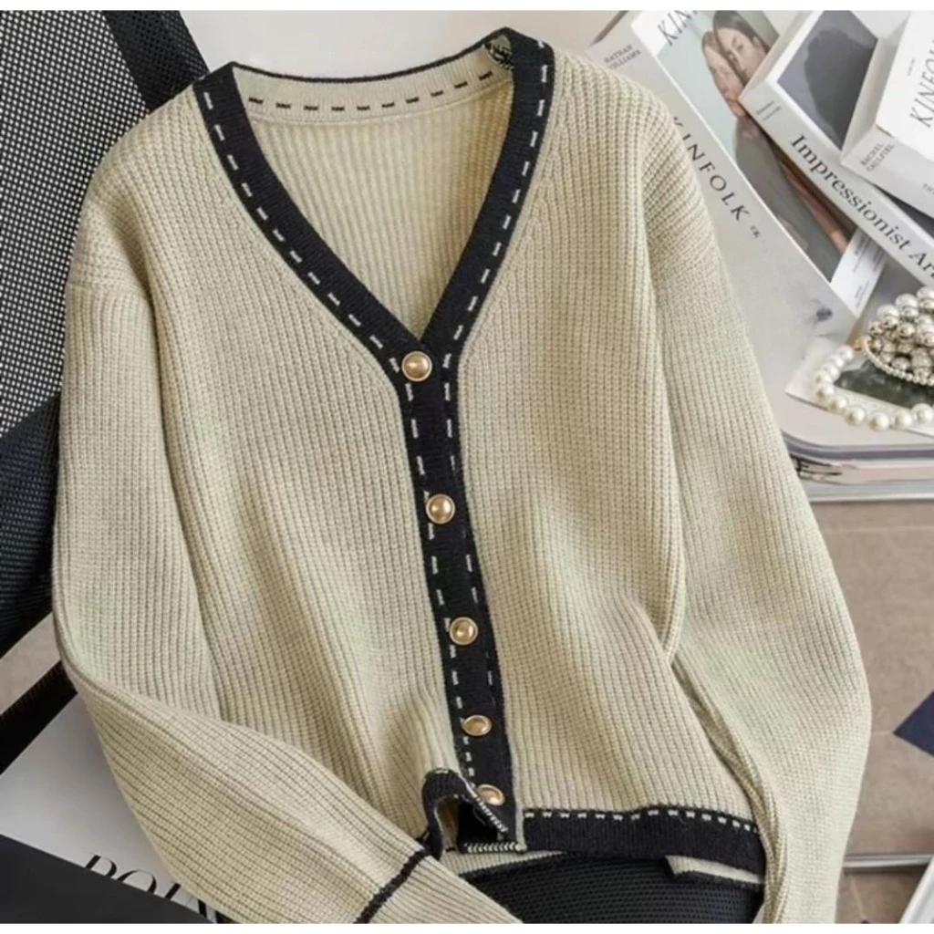 Cardigan Korean Style Simple Classy Elegant Knit Outer Motif Polos Premium Cardigan Wanita Lengan Panjang Terlaris Murah