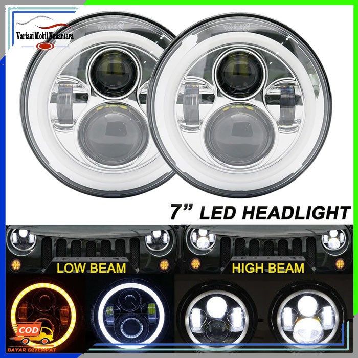 Lampu Led Utama Bulat Depan Sorot Headlamp Variasi Mobil Rubicon Jeep