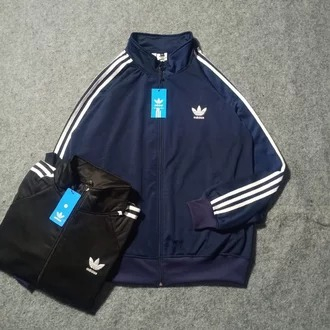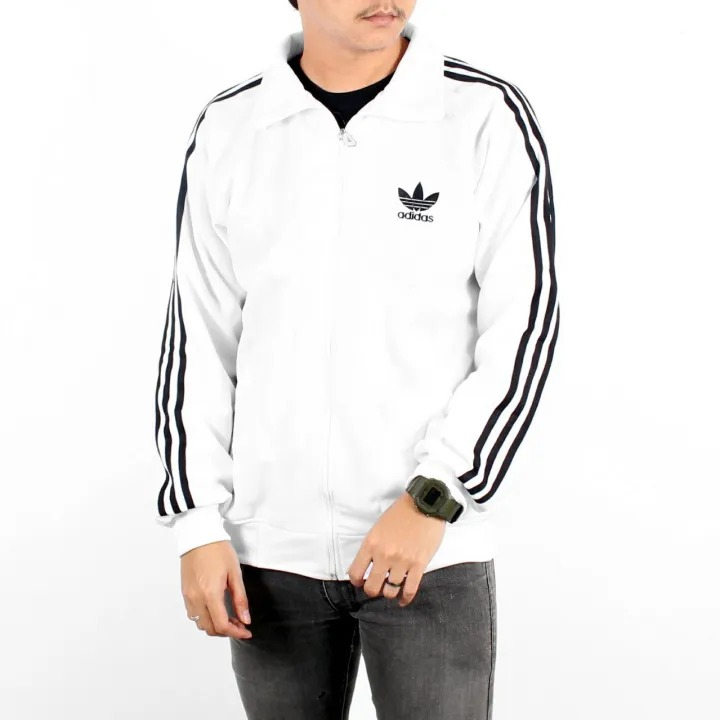 Jaket Tracktop Casual Pria Blue Stripe Putih - Jaket Olahraga Unisex Pria Wanita Navy