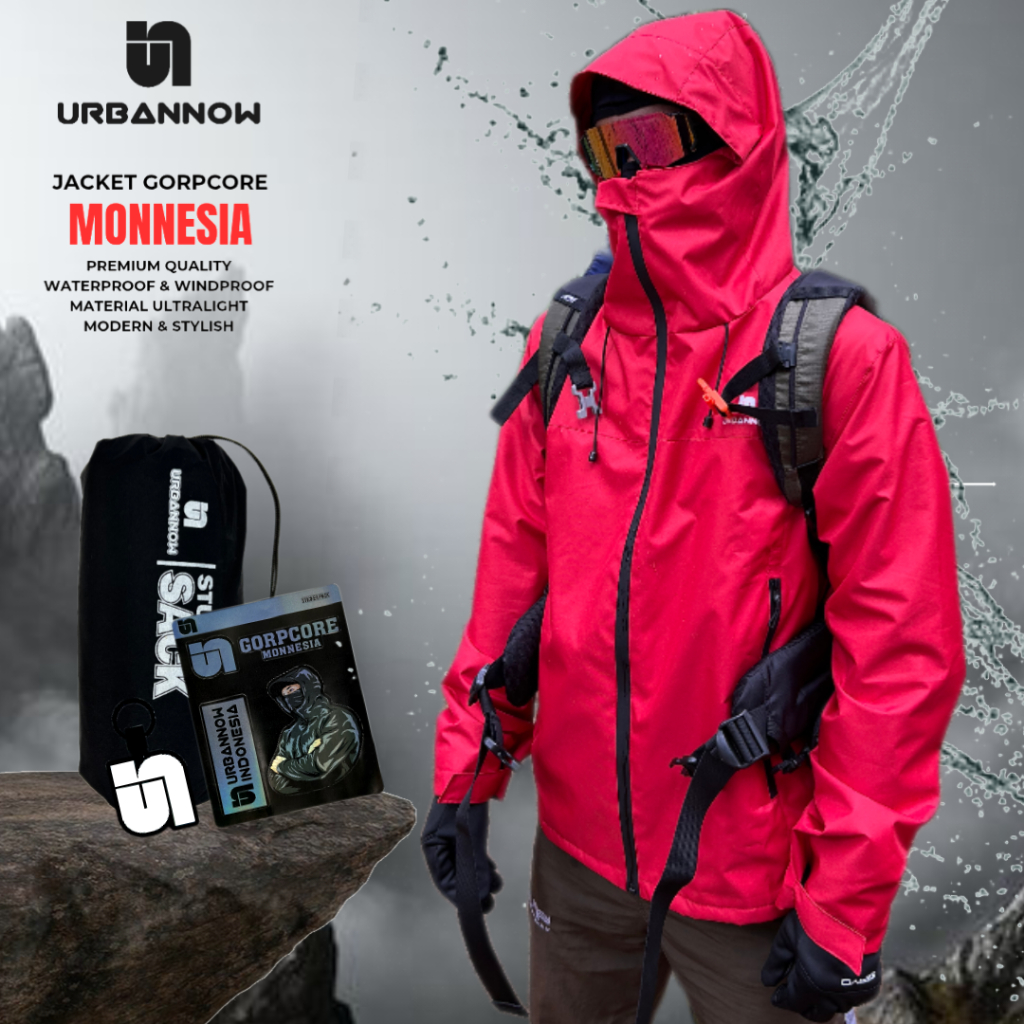 Urbannow Jaket Gunung Gorpcore Waterproof Outdoor Monnesia Jacket Hiking Pria Wanita Windbreaker Casual Windproof