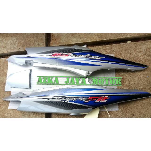 Cover body samping Honda Supra Fit New Warna Silver striping Biru sepasang kiri kanan + striping