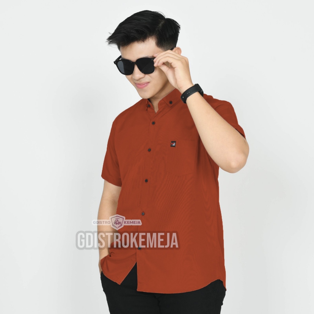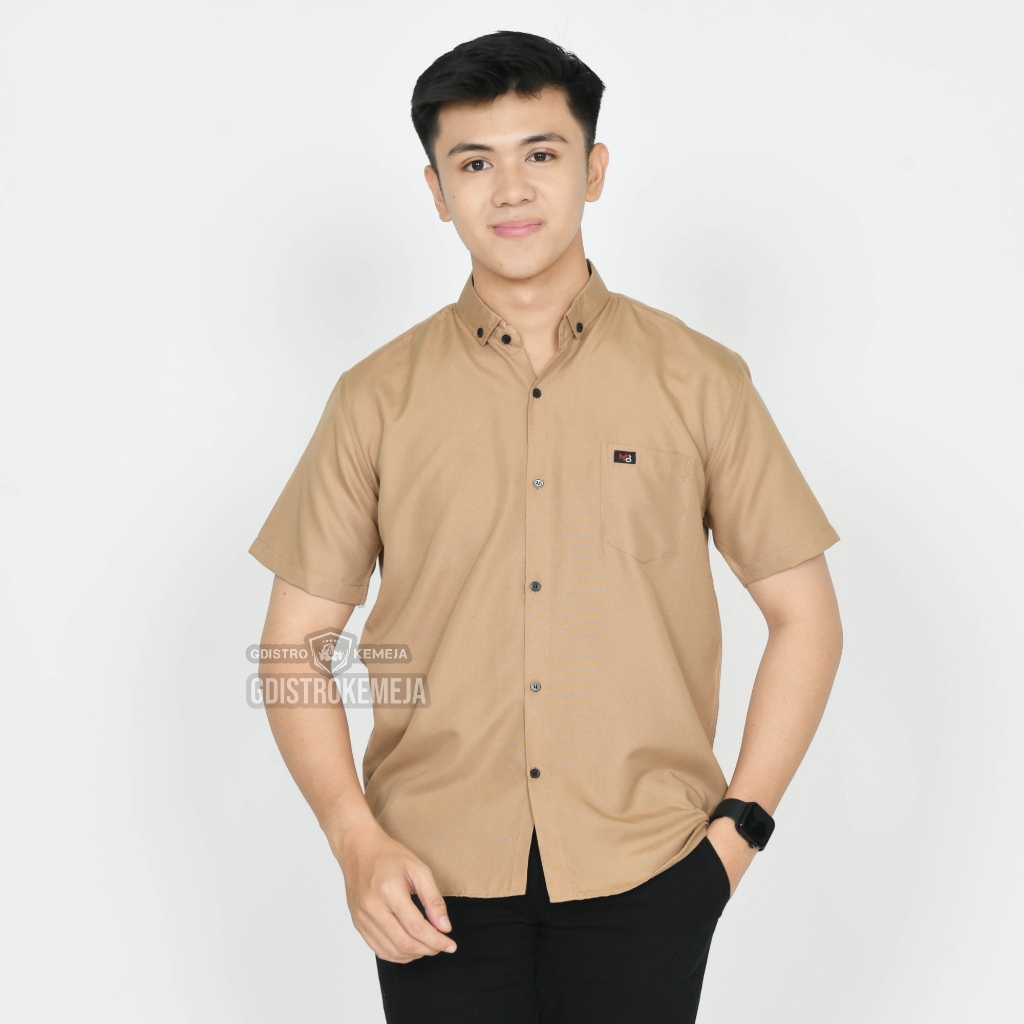 (Gratis Ongkir) Kemeja pria polos pendek Warna Brown lengan pendek kasual bahan katuun premium distro