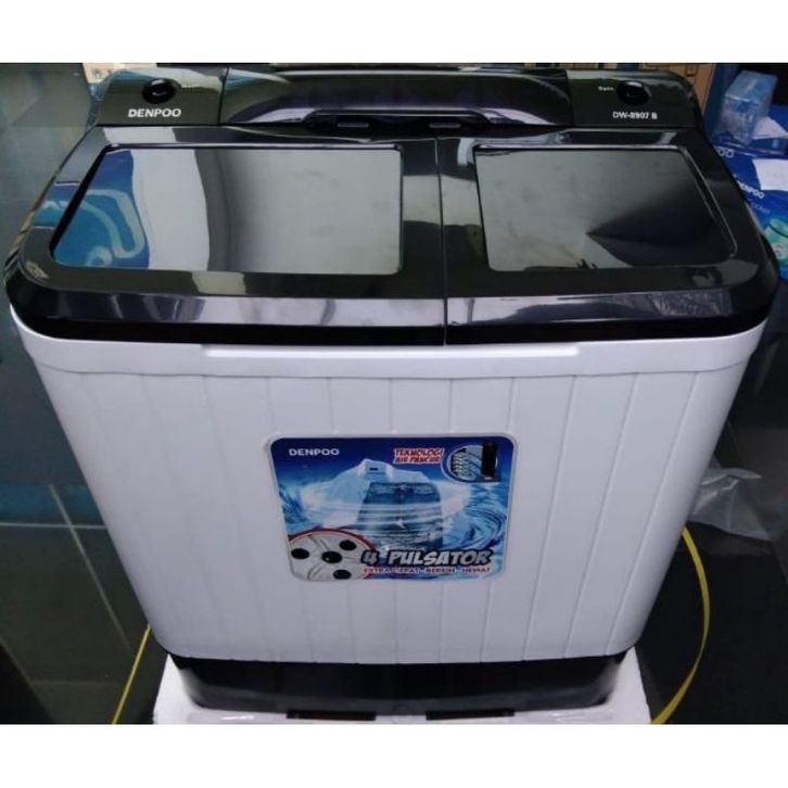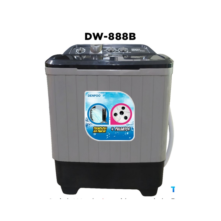[ GARANSI RESMI ] Mesin Cuci 2 Tabung 8 Kg DENPOO DW 8907B Turbo Pulsator