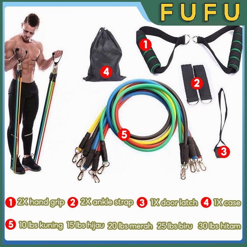 FUFU Resistand band set 11pcs /11in1 Set tali fitness/Set tali gym/Band stretching