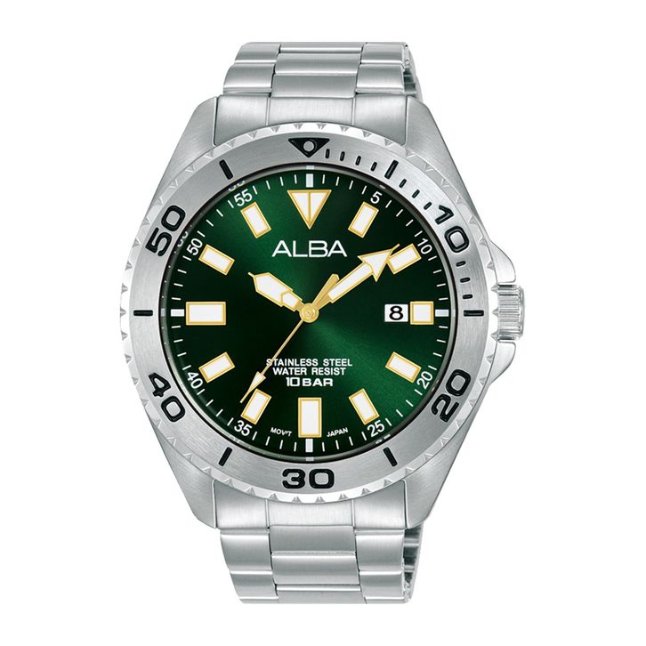 ALBA AS9Q41X1 Green Dial Sports Stainless Steel 100M Original - Jam Tangan Pria