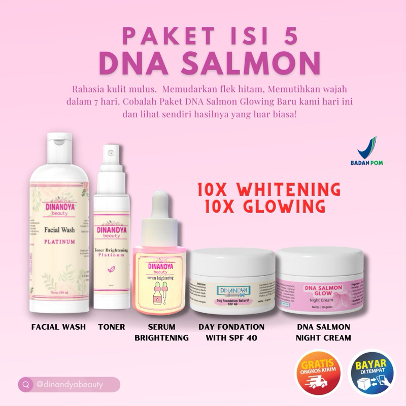 CREAM PEMUTIH WAJAH BPOM PAKET SKINCARE WAJAH DNA SALMON ALL SKIN GLOWING KINCLONG 10 HARI MENCERAHKAN WAJAH ORIGINAL