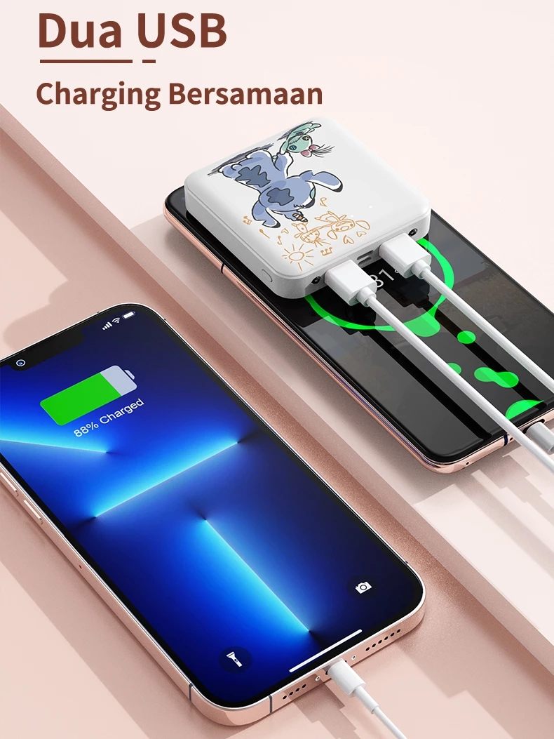 Powerbank 20000 mAh Dual Usb Output Bisa Custom Gambar Power Bank Gaya Kartun Lucu Mini UV Original Premium Terlaris