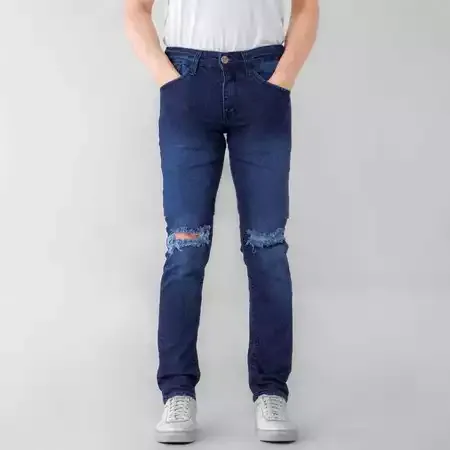 Celana Jeans Pria Sobek Abu Grey Slimfit Stretch Panjang Cowok Ripped Celana Denim Dewasa Robek Skinny Pensil Korea Styl