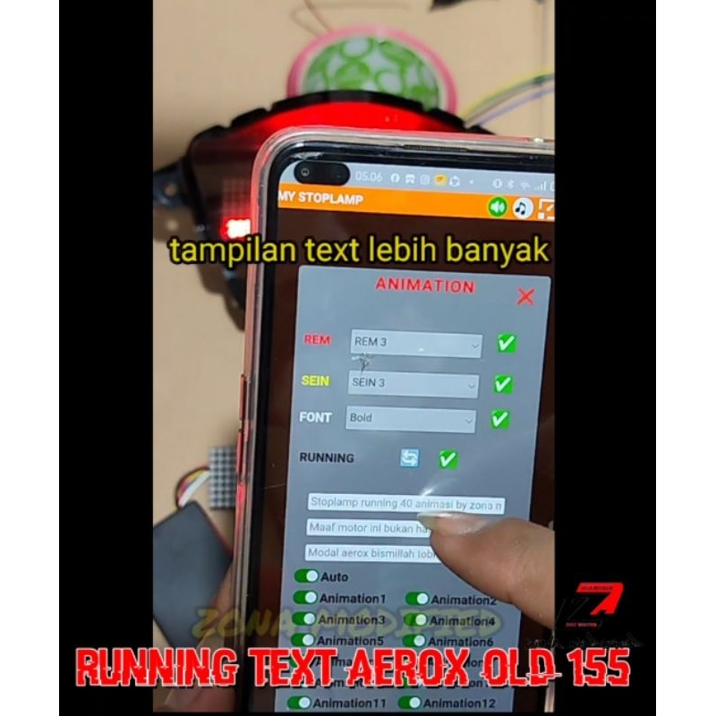 Stoplamp Running Text Animasi Aerox 155 Old 51 Mode Lampu LED Rem Belakang Modifikasi Variasi Motor Running Teks