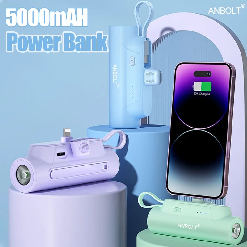 Powerbank Anbolt Fast Charging 5000mAh Real Capacity Power Bank 21700 Baterai Type C Mini With LED Light Premium Murah