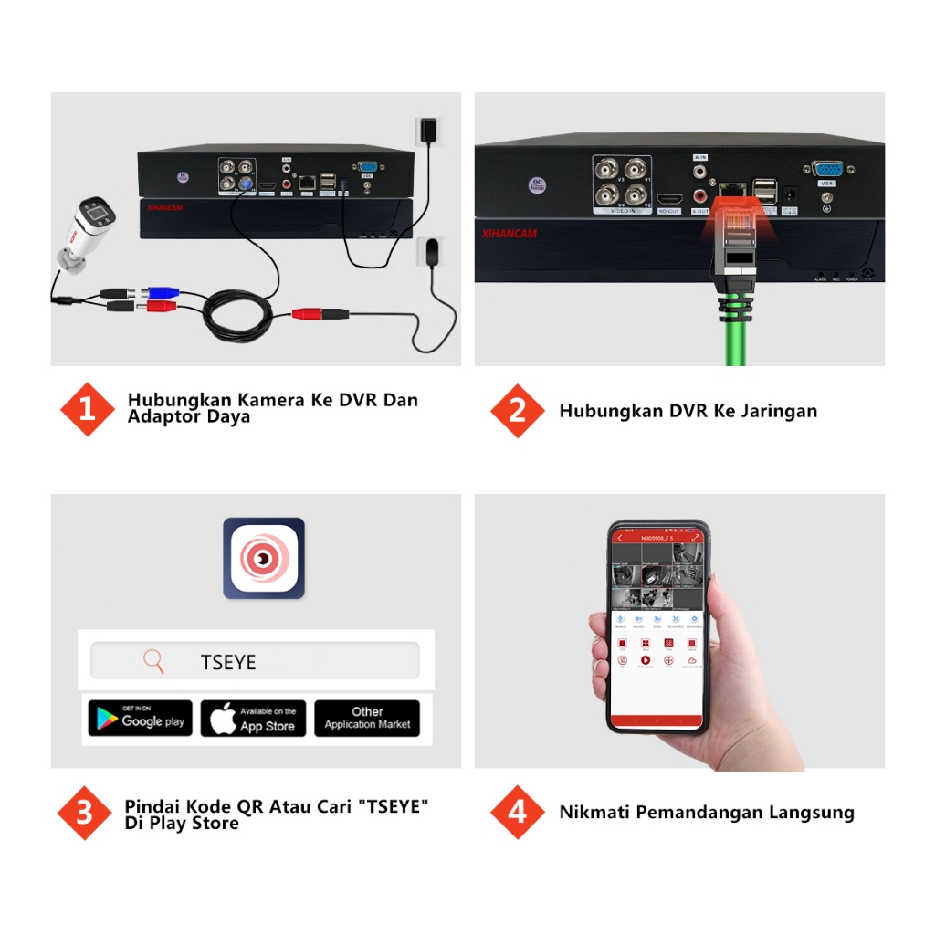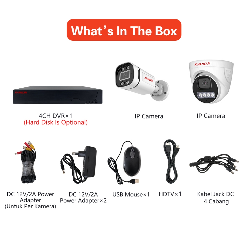 XIHANCAM Paket DVR CCTV 4 Chanel 2MP Kit Kamera CCTV Analog Paket XVR CCTV 4CH Komplit Siap Pasang