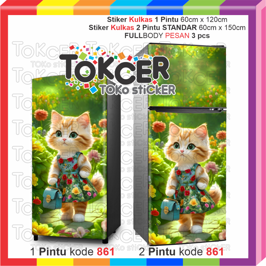 Stiker Kulkas 1 Pintu Atau 2 Pintu Motif Kucing