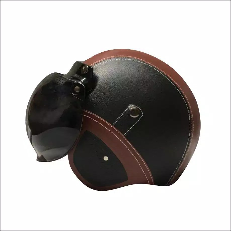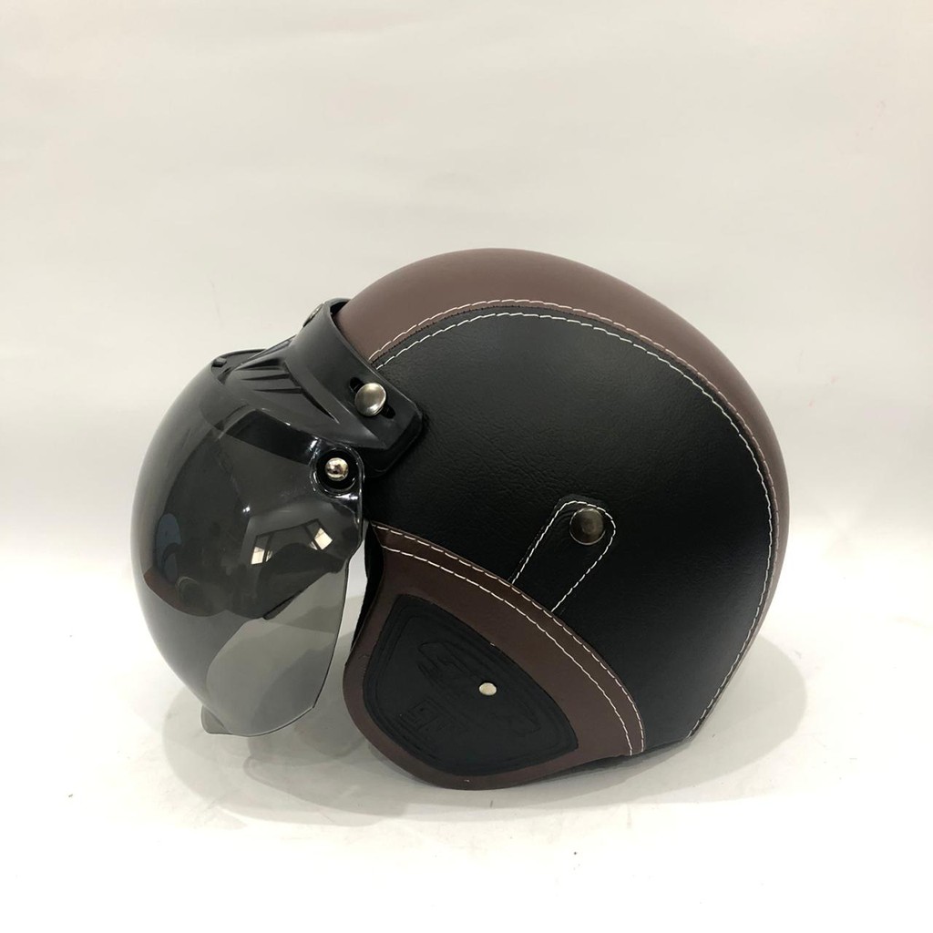 Helm Bogo retro GTR full kulit black brown + kaca helm