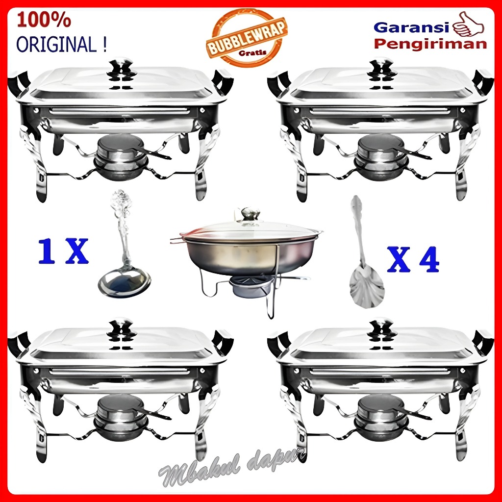 [Mall]Party Set Prasmanan Stainless - Paket 4 segi 1 bulat - Paket Hajatan - wadah prasmanan - tempat prasmanan - sgb12