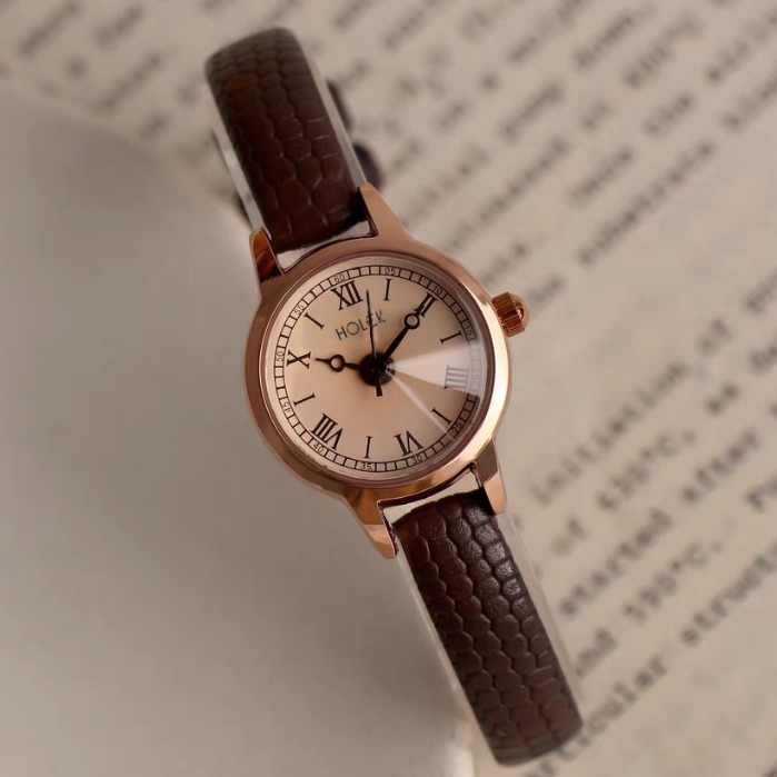 [Star]Jam Tangan Wanita HOLEK 1401 Tali Kulit Original Temperamen Retro Simple Quartz Watch Waterproof +Kotak Gratis