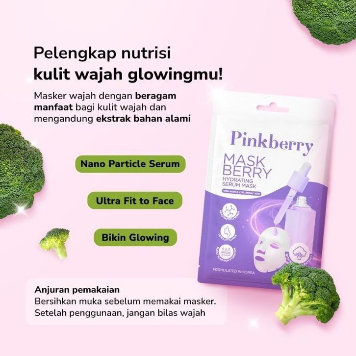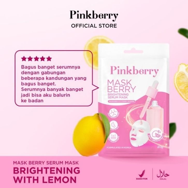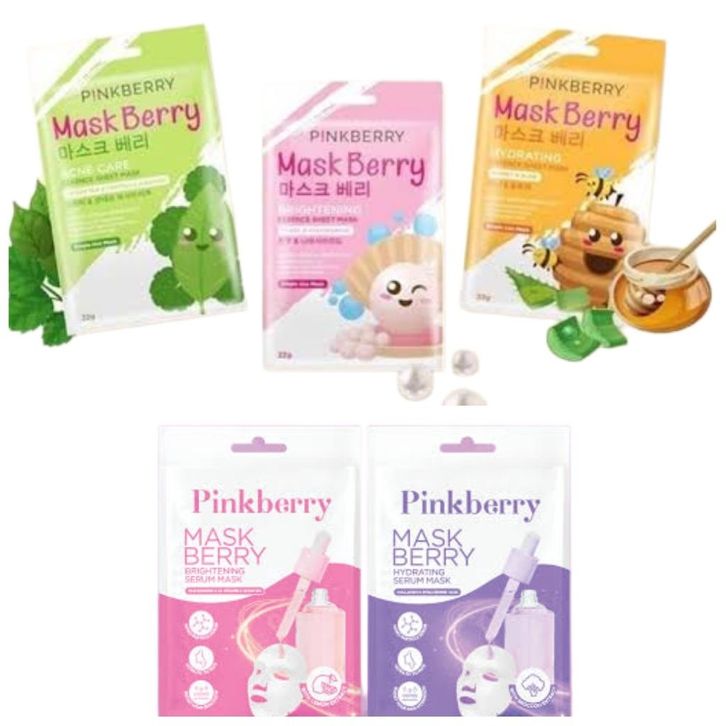 Pinkberry Mask Berry Serum Sheet Face Mask 22g Hydrating Brightening Acne Care Masker Facial Wajah