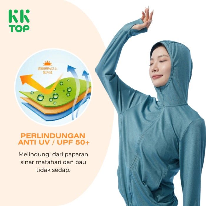 Baju Olahraga Wanita KKTOP Jaket Olahraga Anti UV Wanita Baju Olahraga UPF50+ -9ray M45-50KG