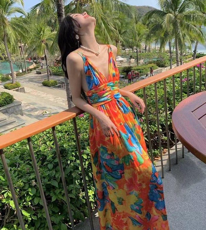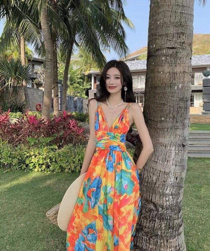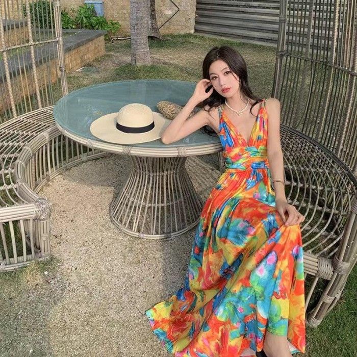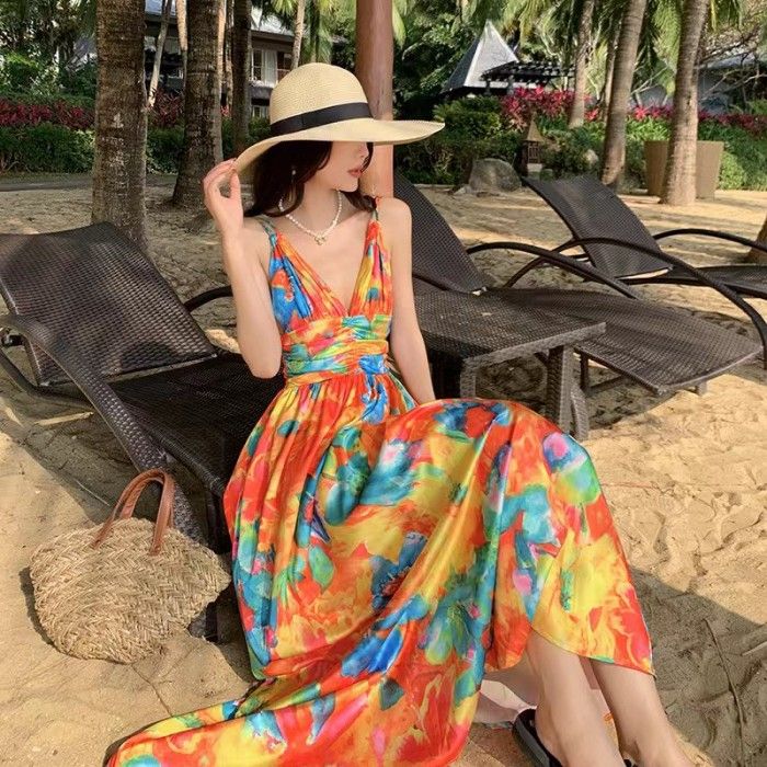 Long Dress SISKA colorful long dress maxi woman / korean summer dress pantai bali - L